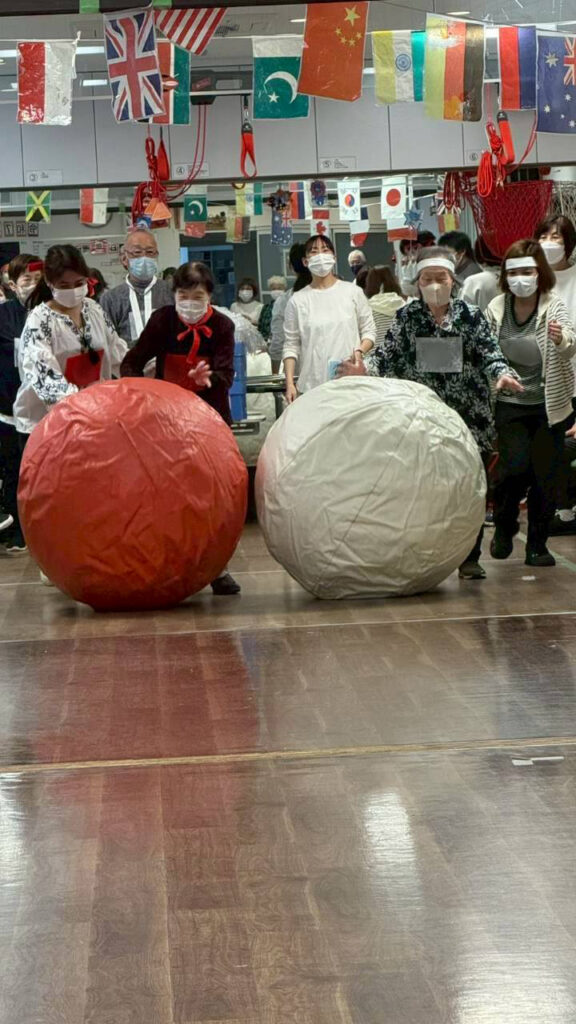 投げる距離や高さを調整しながら、皆さまそれぞれのペースで玉入れにチャレンジされていました。